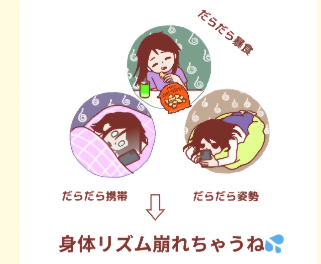 ・忙しくても、食事はできるだけ決まった時間に取りましょう。食べるリズムが整うと、自然と睡眠リズムも安定していきます。