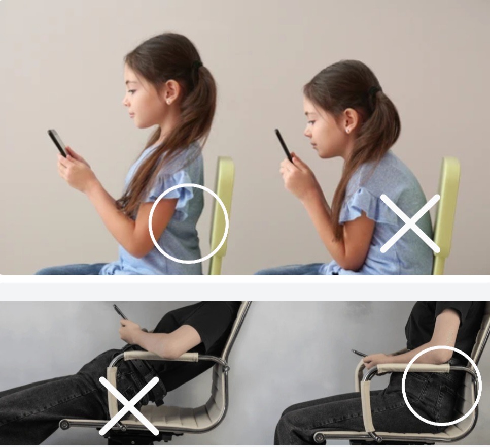 その原因に大きく関わるのが『スマホとパソコン』の使用になります。昨今、公私に渡り、スマホ、パソコンを使うことが多いかと思います。どうしても画面を覗き込むような姿勢、背中を丸める猫背姿勢になりがちです。先ほど申し上げたように背中で丸まった分、腰が前に沿ってバランスを取るので、残念ながら『反り腰と猫背』のスウェイバックが完成してしまいます。では、どのような姿勢をしていけば良いのでしょうか?