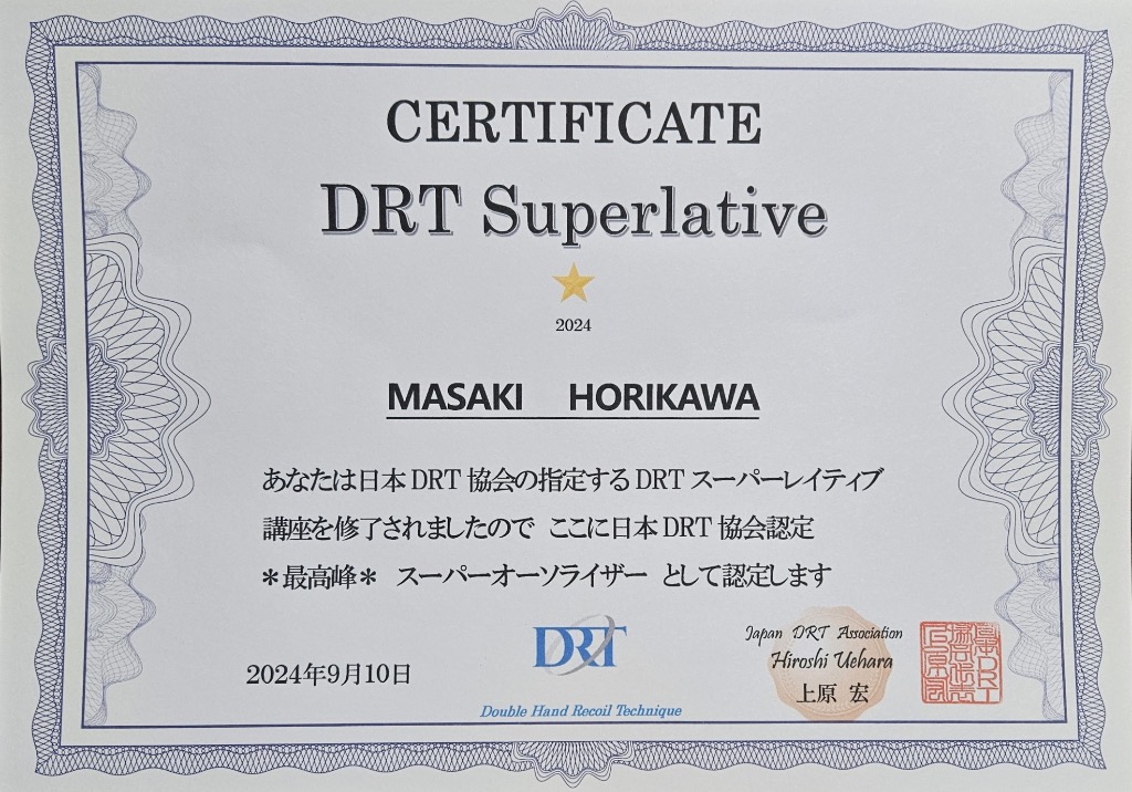 この度、私は日本DRT協会の最高峰であるインストラクターで『スーパーオーソライザー』に認定されました。