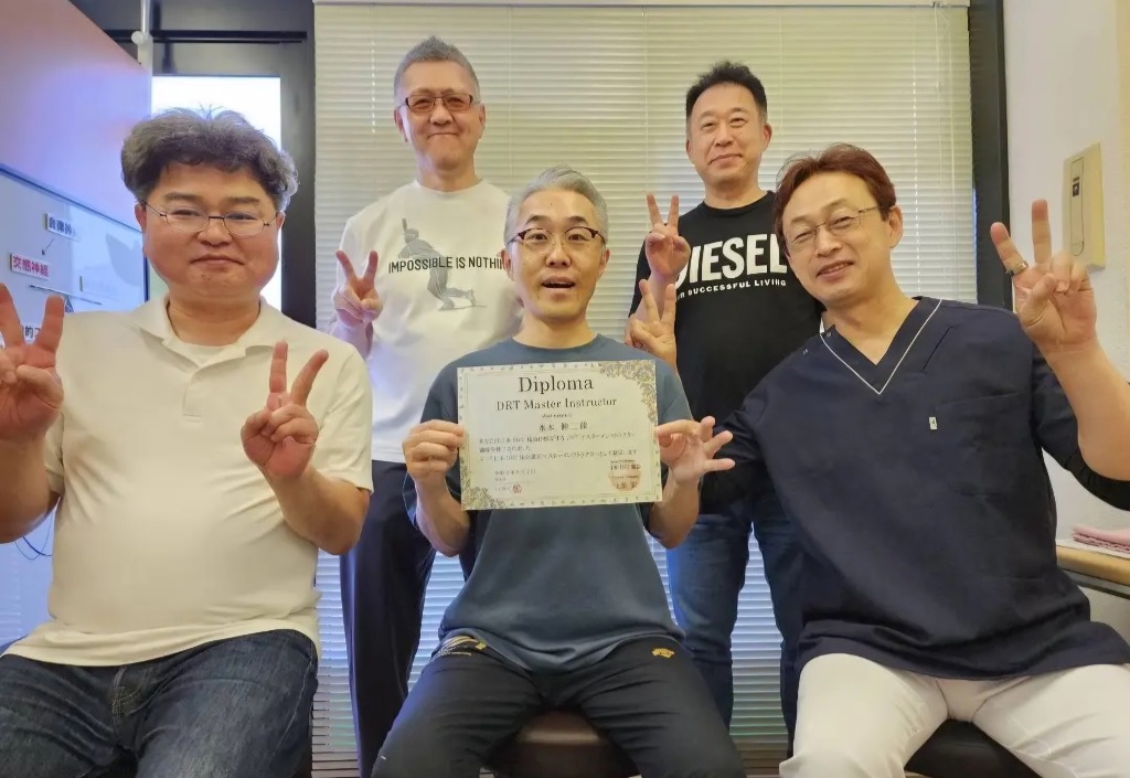 受講生の水本先生は、柔道整復師の資格を取得しておられるので、飲み込みが早く非常に意欲的に学ばれていたので、認定試験も見事に合格されてDRTアドバンスインストラクターの認定を受けられました。水本先生、おめでとうございます。