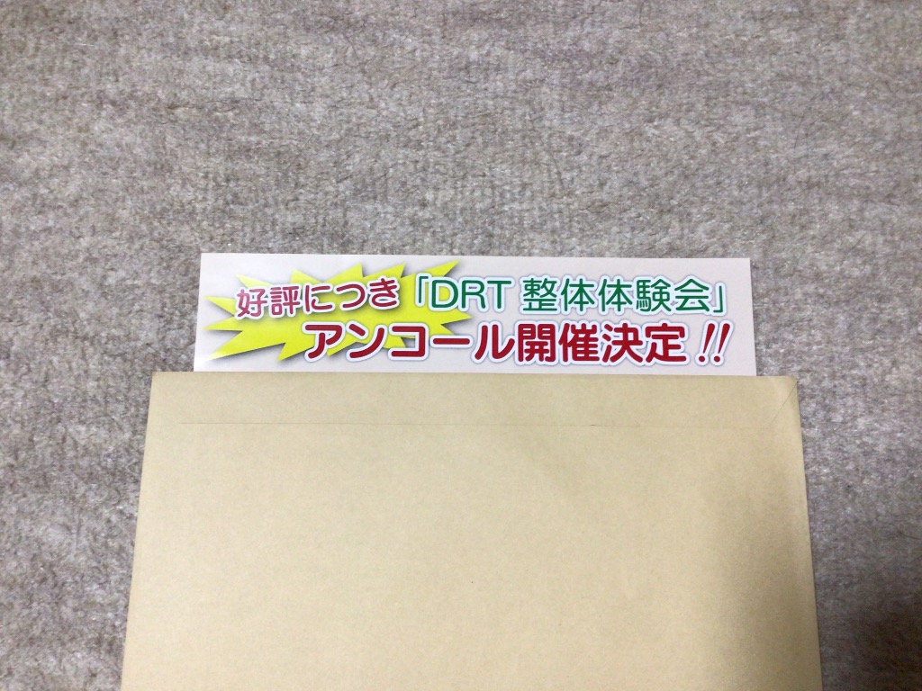先月に開催したDRT整体体験会のチラシの反応が良くて、ちょうど運動会や各行事と重なり行けなかった等の電話を多数頂きましたので、再度開催する事を決定致しました。既存患者さまも増えている事もあり、今回は1日3名さまに減らして期間を年内いっぱいとロングラン開催にする事にしました。果たして吉と出るか凶と出るか・・・中身は㊙️