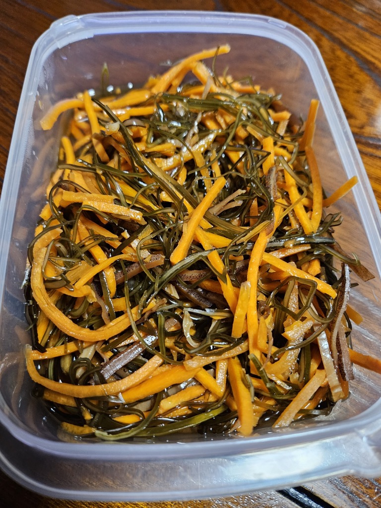 もう10月の半ばという事で、今年もだんだん残りが少なくなって参りました。そしてこの季節に欠かせないものと言えば『いかにんじん』です。ご飯に乗せて食べても良し、酒の肴にしても良しでつい飲み過ぎてしまう程旨いですね。私の好みは、鷹の爪を入れて辛くしたのが好きです。これから少しずつ作り足ししていき、来春までもたせるのが恒例です。
