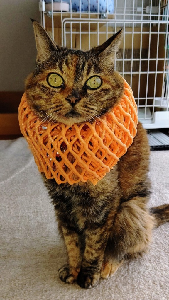 マスコット猫のミルク🐈が患者様から頂いたメロン🍈を包んでいる発泡スチロールに頭を入れたらライオンキングならぬ『にゃイオンキング』だよ❣️とばかりにポーズを決めてくれました。とても癒されます♪